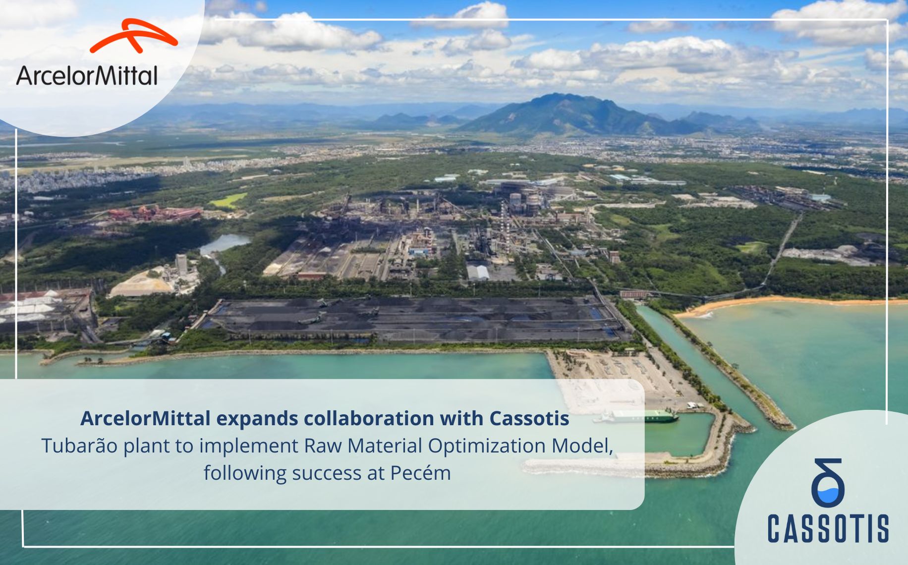 Cassotis reached a new significant milestone in its journey by launching another mathematical optimization project in partnership with ArcelorMittal, now at the Tubarão unit—one of the largest steel plants in Brazil. This plant is specialized in the production of steel plates and coils and is recognized for its operational efficiency, innovation, and commitment to sustainability.
